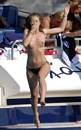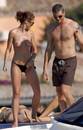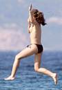 Actress Rebecca Gayheart gets topless to get some sun and take a dip.