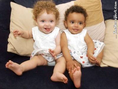 British twins born within minutes of each other are celebrating their first birthday but the two are actually far from identical: one of the girls is black while the other is white with blonde hair and blue eyes.