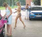 A mysterious blonde woman paid a visit to a gas station in Germany -- wearing nothing but a pair of golden stilettos and a thin gold bracelet.