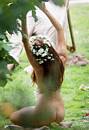 Here's Sienna Miller wearing nothing but a garland of flowers in her hair as she shoots scenes. Sienna plays threesome-loving Maureen Cleave — a London socialite of the day.