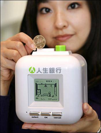 The 'Savings Bomb', which goes on sale in Japan next week, 'explodes' and scatters coins if users fail to save for a long time.