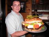 The burger included a bun, lettuce, tomatoes, cheese, onions, mild banana peppers and a cup each of mayonnaise, ketchup, mustard and relish, pub owner Dennis Liegey said.