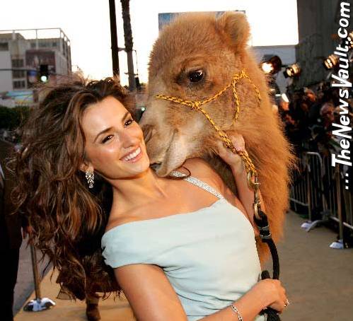 But most damning of all was her rejection of current boyfriend and Sahara co-star Matthew McConaughey - who already had to put up with the actress getting tied-up with a camel at the film's recent premiere. Incase you missed it, Cruz nuzzled up to another 'Sahara' co-star at the Los Angeles premiere - a big, hairy camel. The camel seemed to like her too!