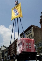 Snapple had been trying to promote a new line of frozen treats by setting a record for the world's largest ice pop, but called off the stunt before it was pulled fully upright by a construction crane. Officials said they were worried the thing would collapse in the 80-degree, first-day-of-summer heat.