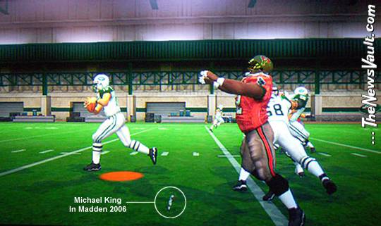 Thanks to a bug in a roster update for the online version of popular NFL game "Madden 2006", a player who is 6-feet-3, 305 pounds -- appears in the game to be 7 inches tall. It's the bug that makes Michael King look like a bug. ![]()