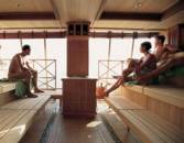 At first glance, they look the same but look closer and one tiny detail is different. In a picture showing passengers enjoying a co-ed sauna together, one thing is rather different. In the German brochure, people are enjoying the sauna in the nude, while in the British version, the same people are suddenly covered up and sporting swimsuits.