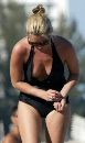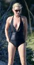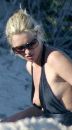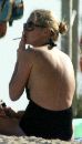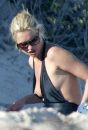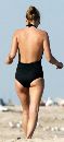 Supermodel Kate Moss slips out of her swimsuit at the beach.